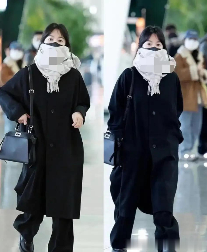 161的宋慧乔又带火了一种秋冬新穿法: 长款大衣+围巾, 显高又时髦