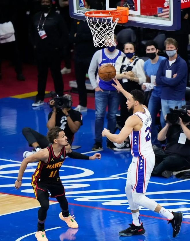 现在的西蒙斯在进攻端几乎毫无威胁:没有三分、没有中距离、没有突破,就连罚球命中率也只有59.2%,最低的一个赛季只有40%,还不如一些球员的三分命中率高。