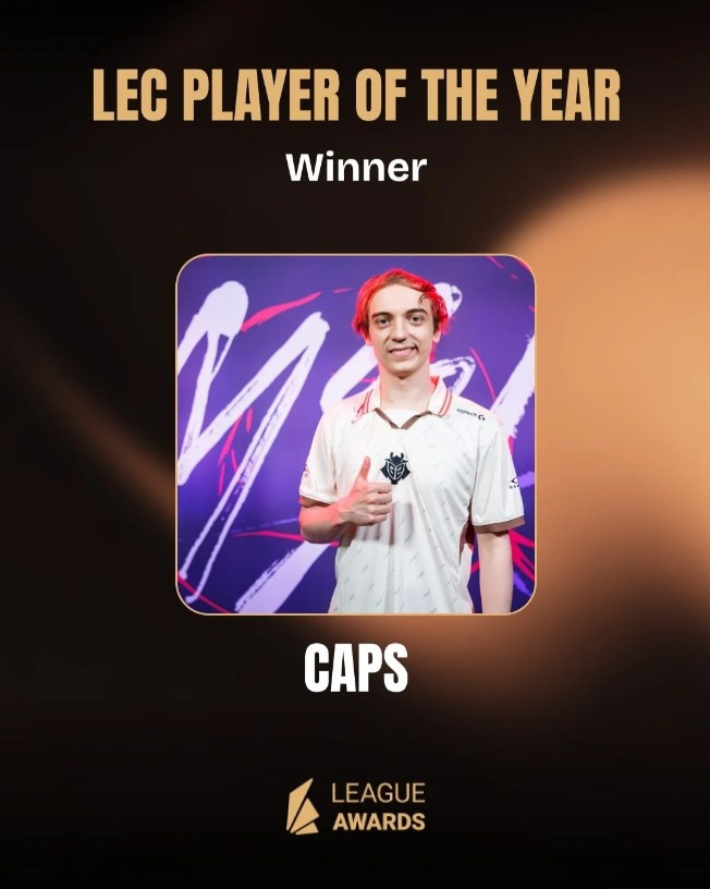 直播吧11月29日讯由LEC主持人Sjokz和twitch著名主播Caedrel主办的联盟颁奖典礼(LeagueAwards)北京时间今晨公布各奖项评选结果,G2中单选手Caps荣获LEC年度最佳选手奖,其余提名选手: