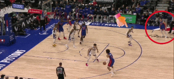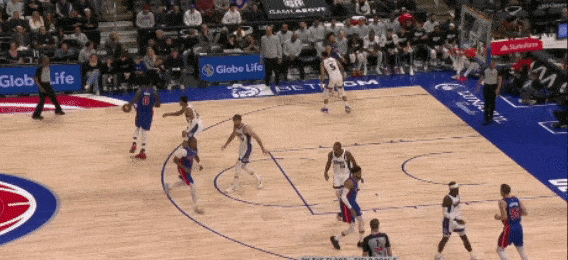 我们拿上一场活塞对阵国王的比赛举例,看看邓罗利用无球跑动给自己跑出了多少机会。