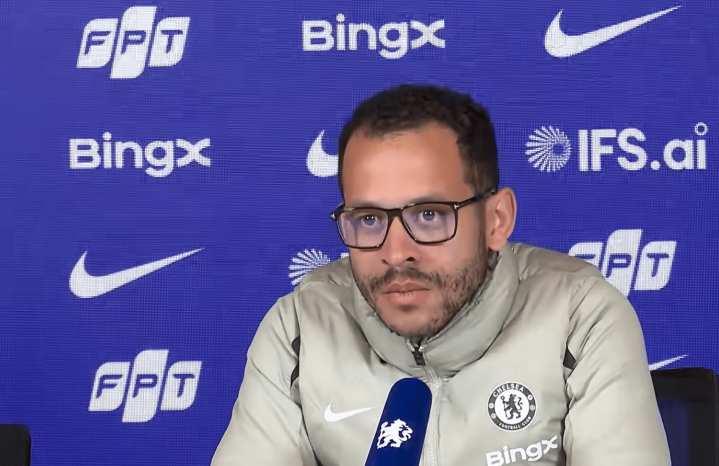 虎扑04月10日讯切尔西主教练罗西尼尔出席对阵曼城的赛前发布会。