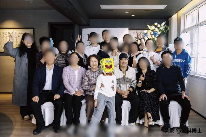 黄晓明的父母也来了,大合照中最前排最中间的就是二老;小海绵特别喜欢爷爷奶奶,尤其总爱缠着奶奶,爷爷奶奶对这个孙子更是无比宠爱,每次见到小海绵都会不自觉得高兴一整天。