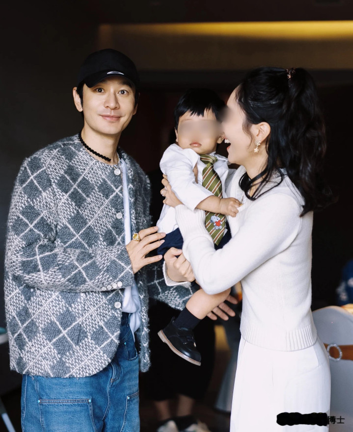 下图是小寿星的父母,男子应该是黄晓明的表弟,留着短发很精神,面目清秀,不输黄晓明;女子长着一张鹅蛋脸,气质清新脱俗。