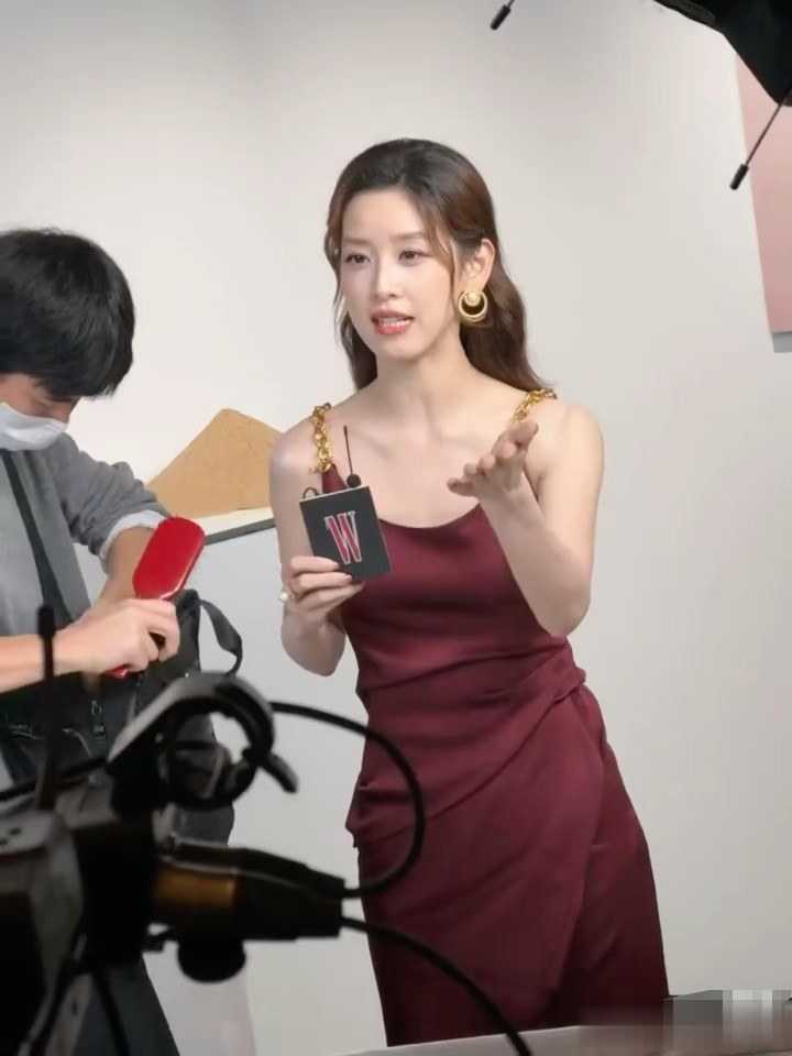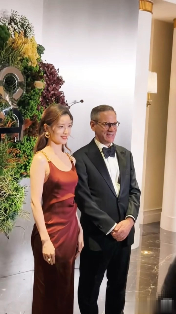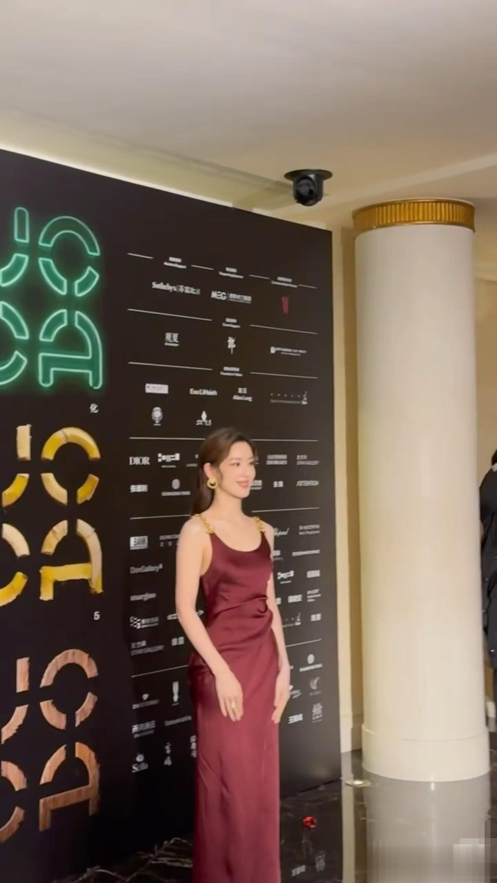 31岁章泽天穿酒红色长裙亮相活动, 竟把风情万种的朱珠比下去了!